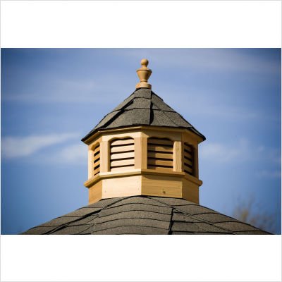 CCUP Features: -Material: Cedar, aluminum. -Color: Bronze. -Perfect accessory for your cedar gazebo. -Cedar base with ventilating slats. -Powder coated aluminum roof. -Decorative cedar top finial. -Light assembly required. -Dimensions: 27'' H x 19'' W x 19'' D.