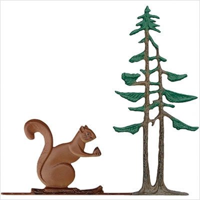 65267 Finish: Garden Black This 30'' squirrel & pines weathervane will add a woodsy touch to your home or garden. But don't you think that squirrel is a little bit too big to climb this particular tree? It includes everything you need to mount it and comes with full instructions. Features: -Crafted of rust-free aluminum -Includes adjustable aluminum roof mount base -Ornament Dimensions: 7''L x 14''H About Whitehall Products With over 60 years of experience, Whitehall Products has earned an excellent reputation as a provider of quality home and garden d cor products with a broad range of unique and innovative products. An in-house design department creates each product with distinctive styling and innovative function. Through years of precision casting experience, Whitehall provides the highest quality craftsmanship in home address plaques, weathervanes, sundials, bird feeders, and garden ornaments.