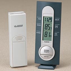 La Crosse Technology -- Simply the Best Accurate Outdoor Temperatures Displayed in the Comfort of Your home. Never go outside again to see what the weather is like. This wireless digital thermometer is capable of collecting and electronically transmitting weather data directly into the comfort of your home. Features Include: Indoor & Outdoor Temp.'s displayed in Fahrenheit or Celsius Includes One TX2U remote temperature sensor Expand up to THREE outdoor temperature transmitters FREE removable & versatile stand Suitable for desktop or wall mounting 12 or 24 Time display -- Manuel Set Time Minimum/maximum temp. memory Time recording for remote temperature Top Quality from Lacrosse Technology Indoor Temp. Range 32 F to 140 F Remote Temp. Range -21.8 F to +156.2 F Transmission Frequency 433.92 HMz Transmission Range Up to 80 feet open air Great Gift Idea -Low Price Guarantee
